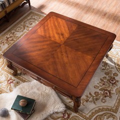乐满庭美式乡村正方形茶几实木茶几桌复古大方几客厅泡茶桌古典