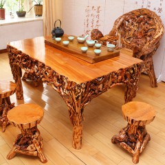 典艺阁 中式实木茶桌餐桌根雕功夫茶几休闲树根茶台流水茶海天然