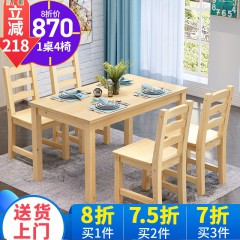 顺邦 实木餐桌现代简约 一桌四椅饭桌餐桌椅组合 原木色 一桌四椅