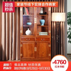 粤顺 红木家具非洲花梨(学名:刺猬紫檀)书柜实木书柜玻璃柜博