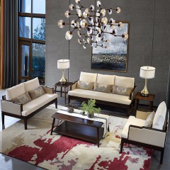 A家 布艺沙发新中式实木沙发组合古韵时尚单人双人三人沙发客厅