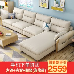 中派 沙发 客厅可拆洗布艺沙发实木北欧沙发 海绵款左双+右双+脚