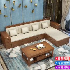 爱惟森实木沙发储物冬夏两用沙发组合贵妃带转角中式沙发床木质