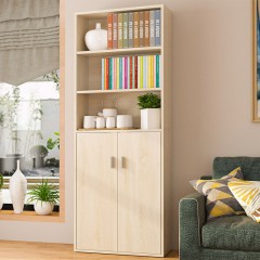 沃变 书柜书架 四层双门书柜书架置物架文件柜储物收纳柜子加宽