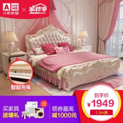 A家 床 欧式床双人床公主法式皮床木软靠婚床高箱储物主卧室大床