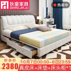 狄豪(DIHAO)床卧室主卧双人床 真皮床婚床真皮床【不含三抽及