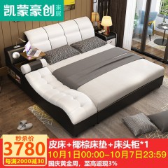 凯蒙豪创 床 真皮床 软床 皮床 双人床1.8*2.0米-标准床+椰棕床