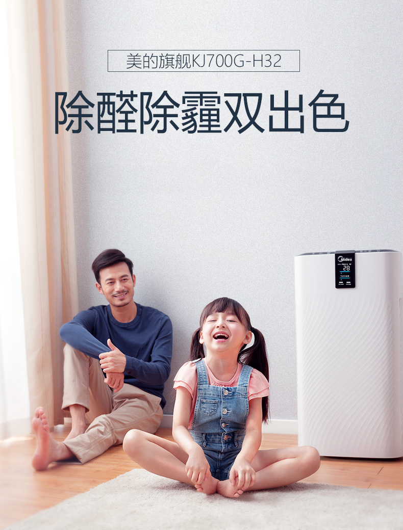 美的(Midea)KJ700G-H32 空气净化器 家用静音除甲醛雾霾二手烟PM2.5净离子杀菌数显wifi智能控制