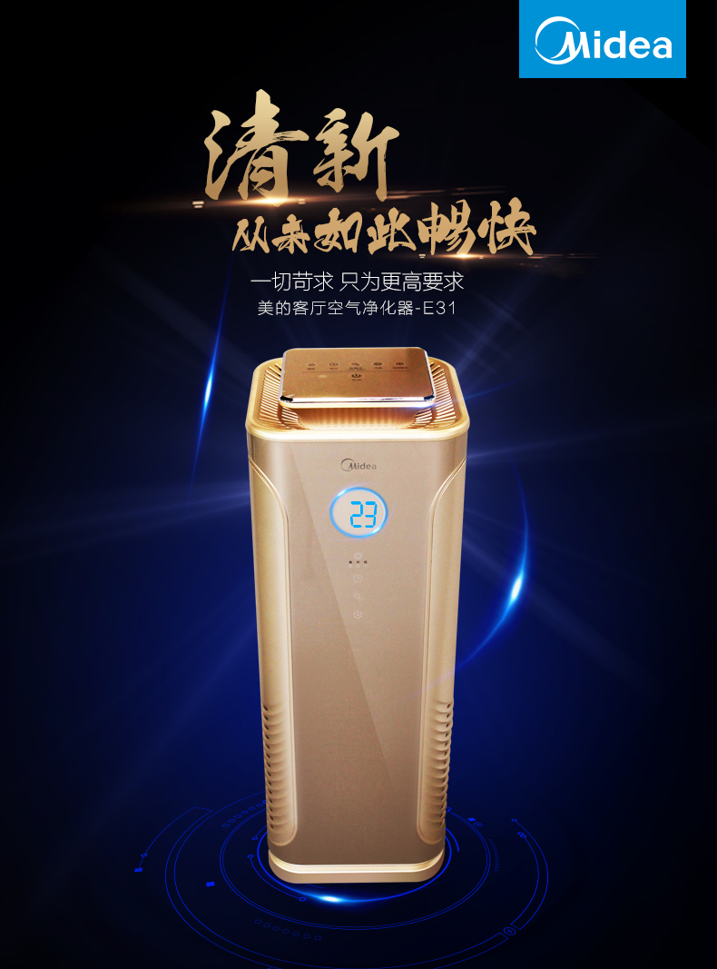 商品名称:美的(Midea) 空气净化器 KJ400G-E31 家用 除甲醛 净化机金色