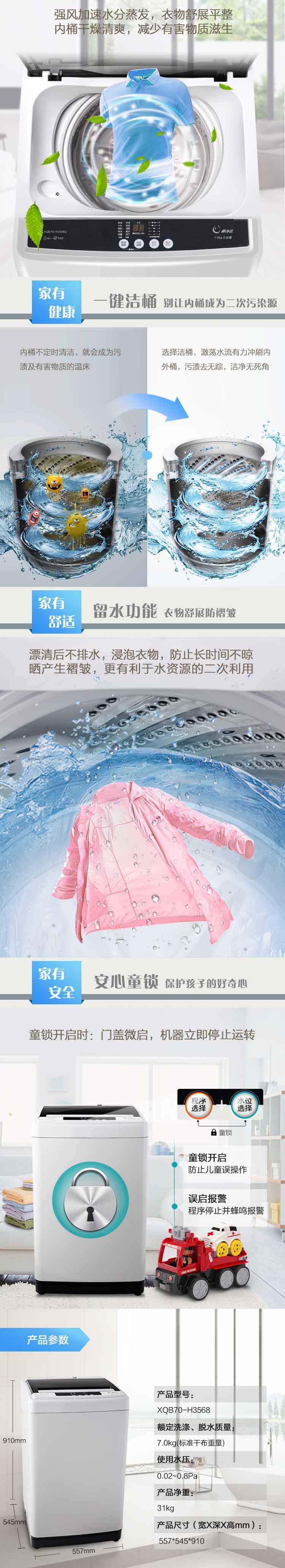 商品名称:海信 XQB70-H3568 7公斤全自动波轮式 洗衣机(灰色)