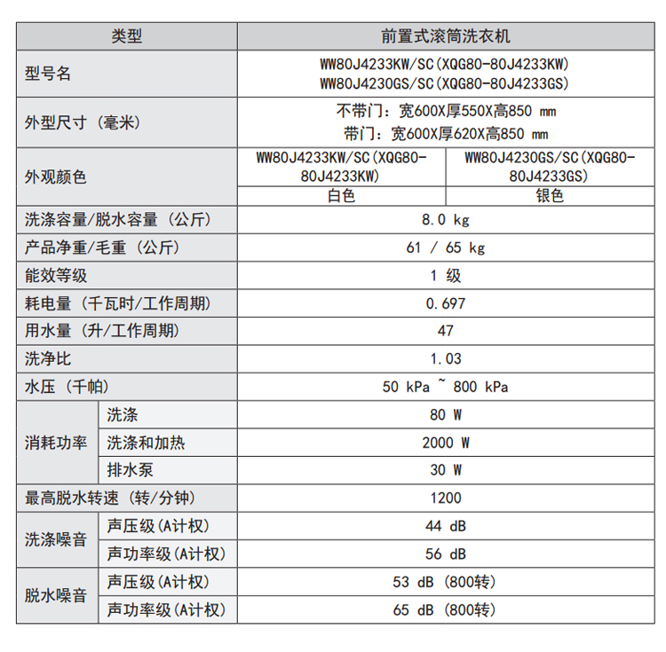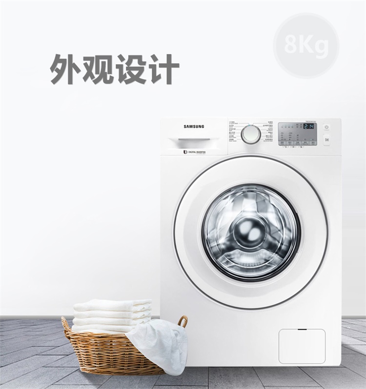 商品名称:三星(SAMSUNG) WW80J4233KW/SC 8公斤静音智能变频滚筒洗衣机白