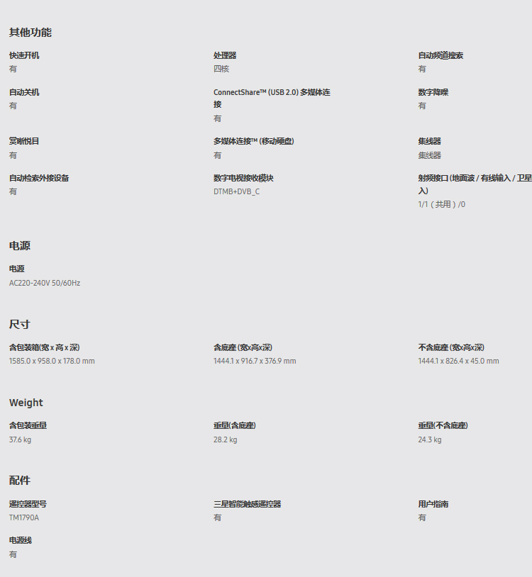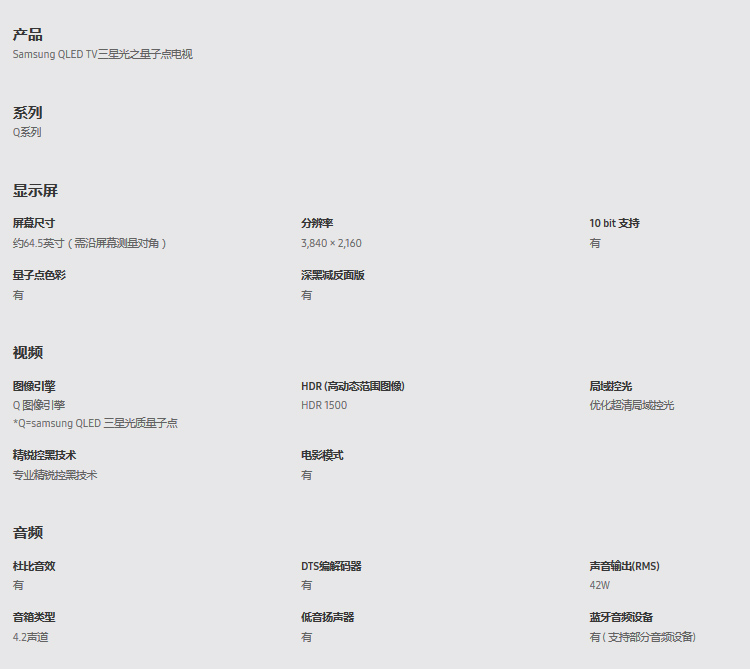商品名称:三星(SAMSUNG)65英寸 智能4K 量子点 平面电视QA65Q7FAMJXXZ