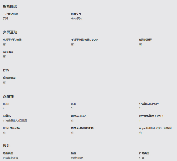三星(SAMSUNG)65英寸 智能4K 量子点 平面电视QA65Q7FAMJXXZ