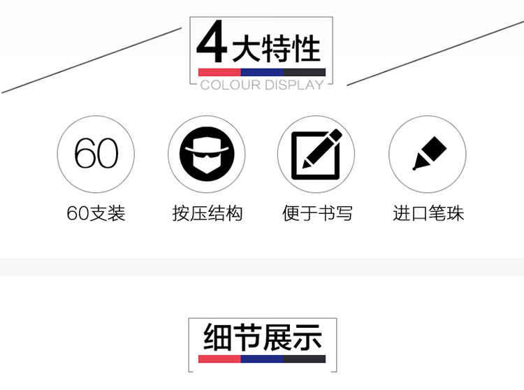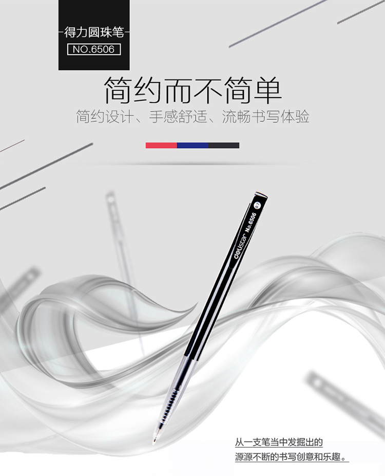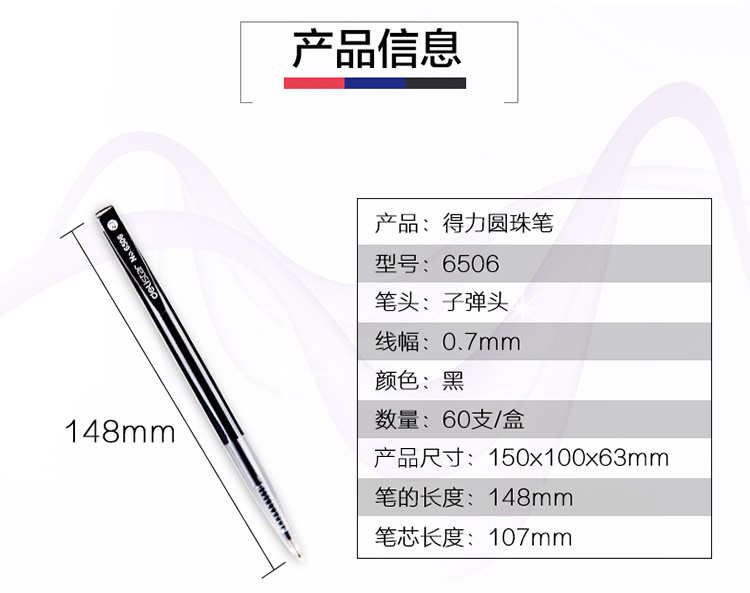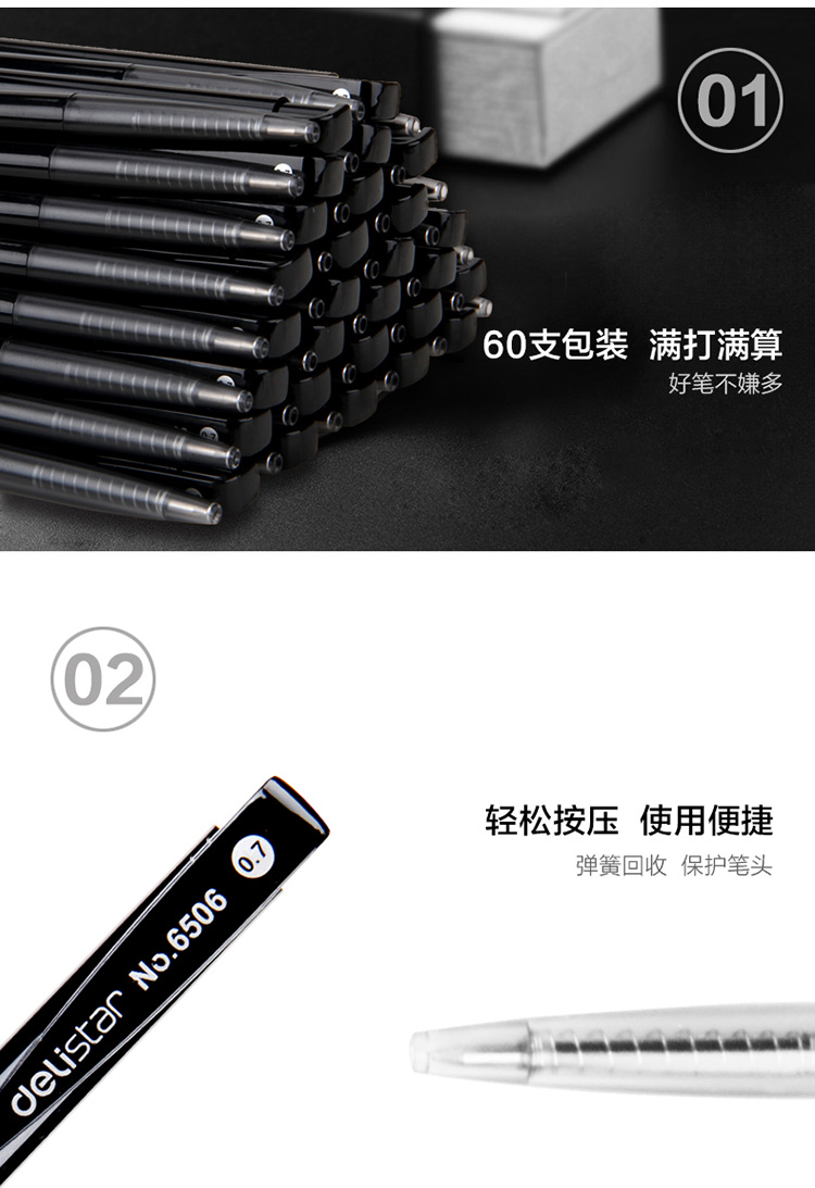 商品名称:得力(deli)60支黑色0.7mm按动式圆珠笔原子笔 6506