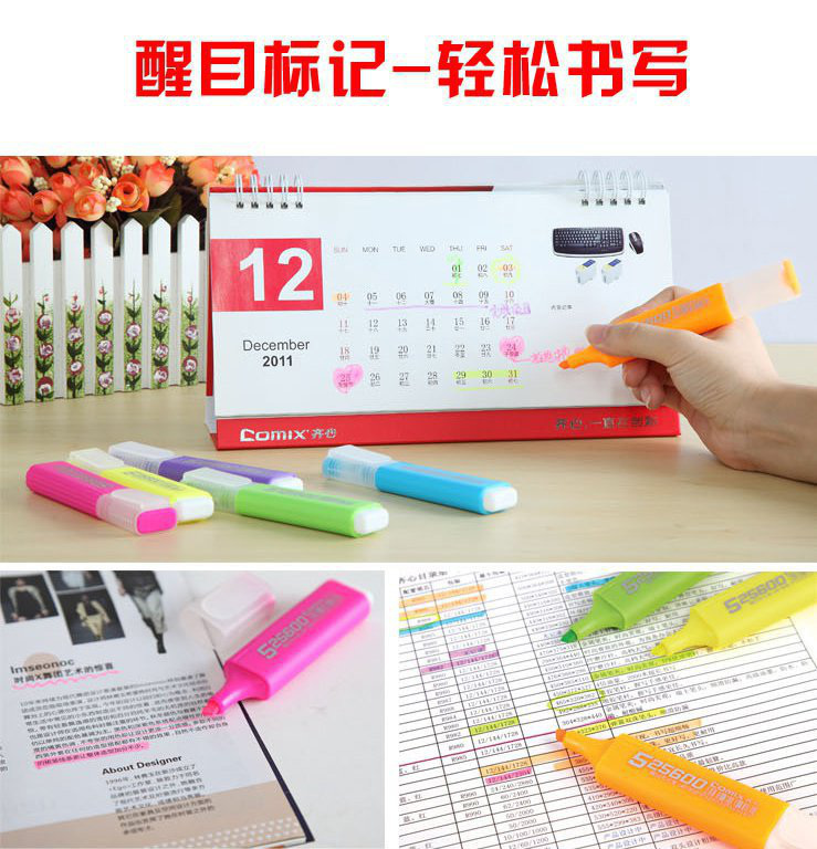 齐心(COMIX)HP908 醒目荧光笔5.0mm 粉(60支/箱)