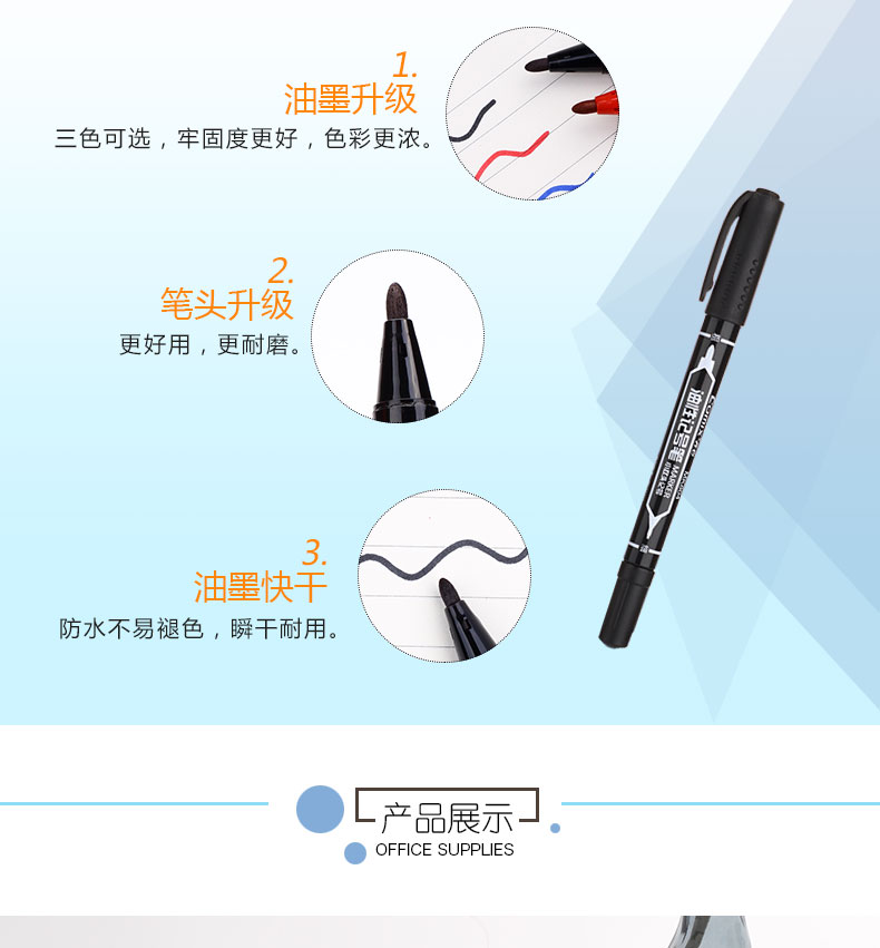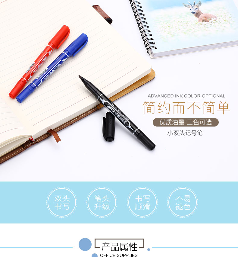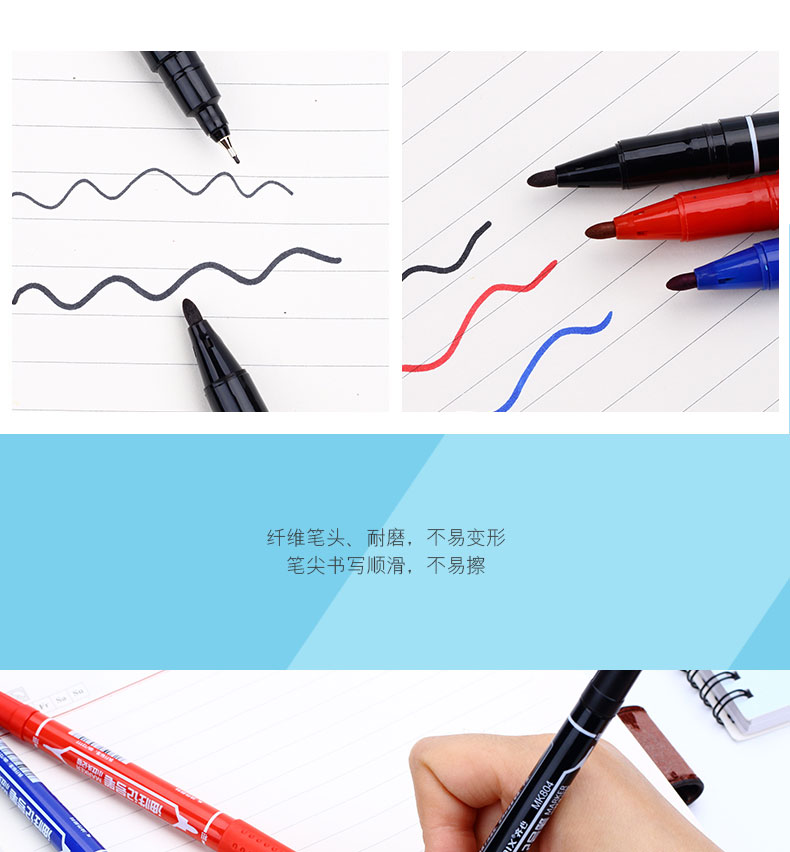 商品名称:齐心(COMIX)MK804 记号笔0.5mm和2.0mm 小双头 蓝(144支/箱)