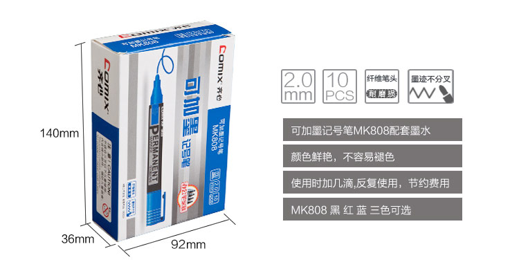 商品名称:齐心(COMIX)MK808 物流可加墨记号笔10支 蓝色