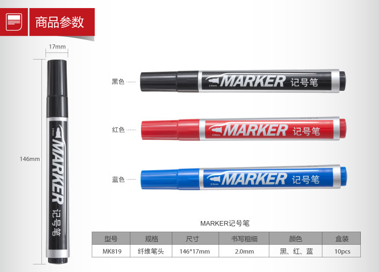 商品名称:齐心(COMIX)MK819 物流记号笔2.0mm 10支装 黑色