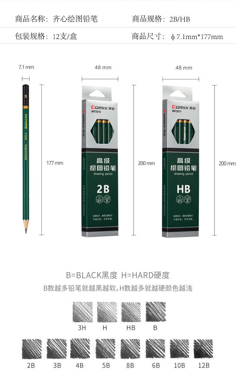 商品名称:齐心(COMIX)MP2011 高级绘图铅笔 HB 12支每SET(24盒/箱)