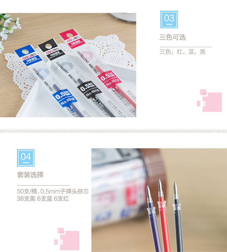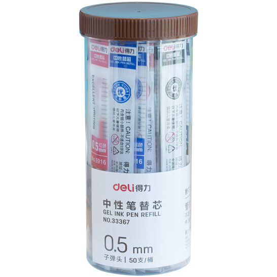 得力(deli)0.5mm混色中性笔签字笔替芯 50支/盒(38黑+6蓝+6红)33367