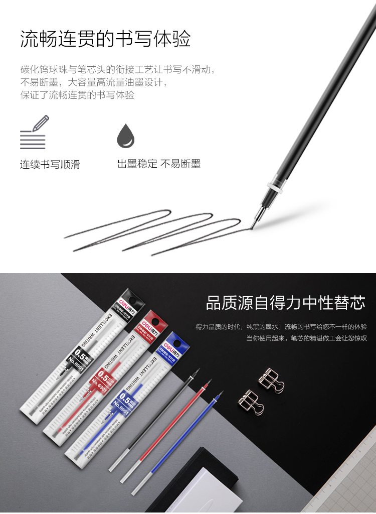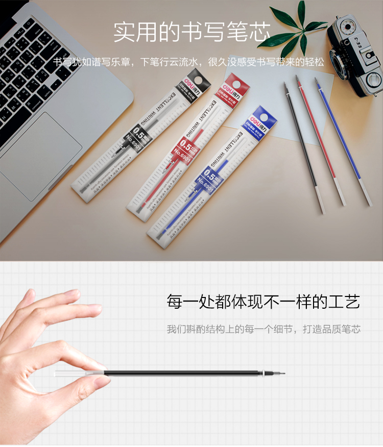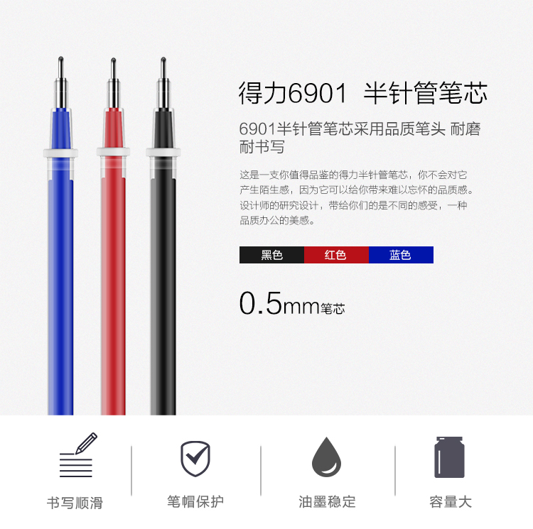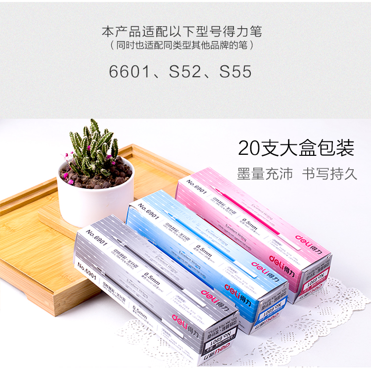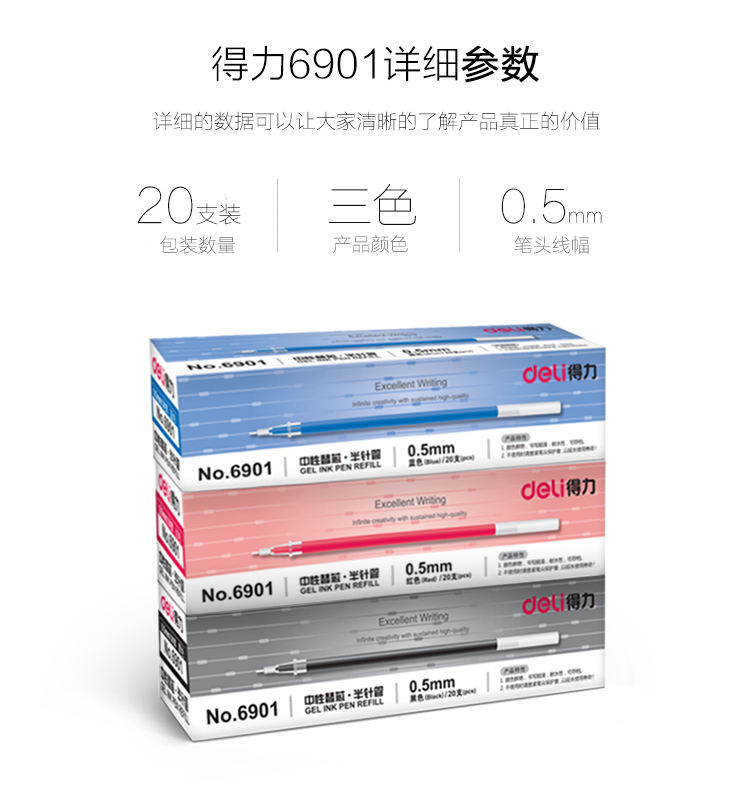 商品名称:得力(deli)0.5mm半针管黑色笔芯 中性笔水性笔签字笔替芯 20支/盒6901
