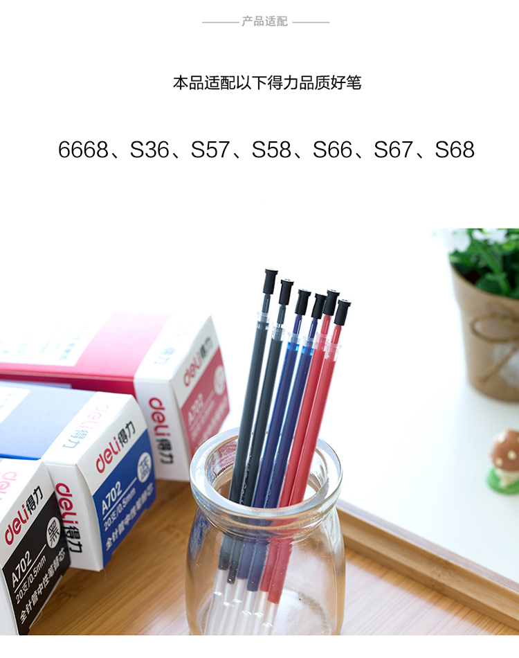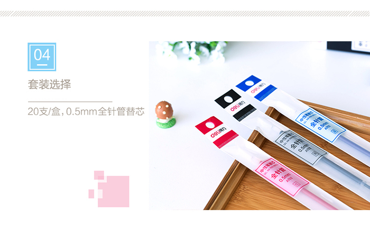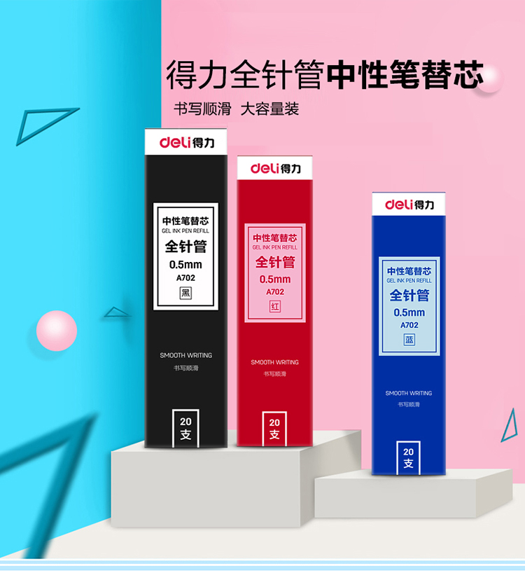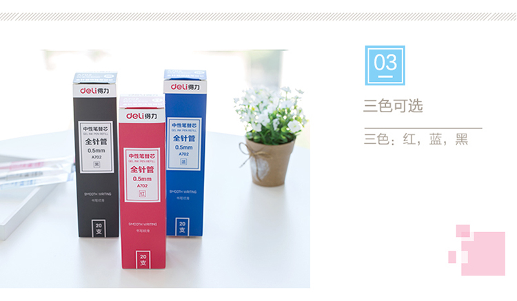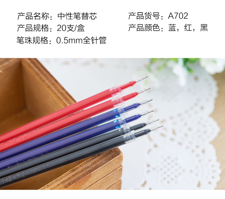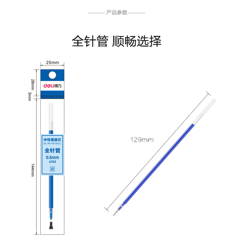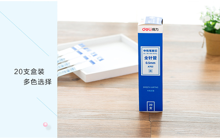 得力(deli)全针管0.5mm蓝色中性笔水性笔签字笔替芯 20支/盒A702