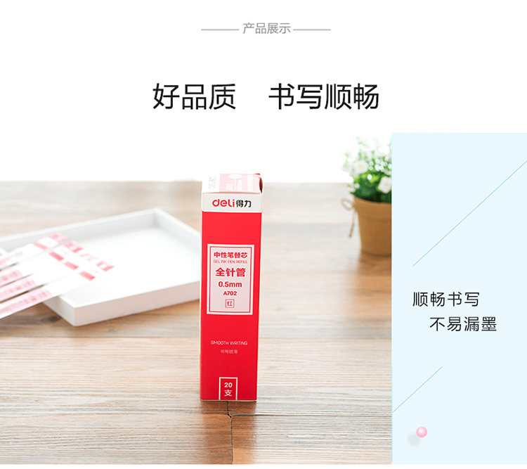 商品名称:得力(deli)全针管0.5mm蓝色中性笔水性笔签字笔替芯 20支/盒A702