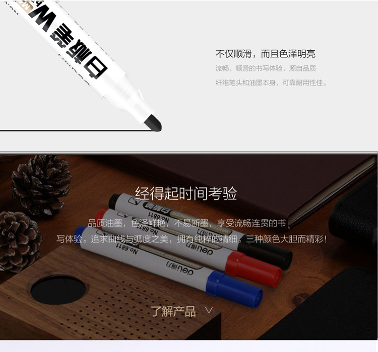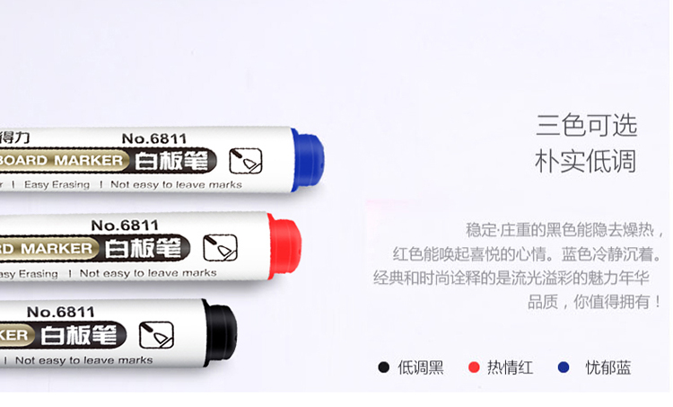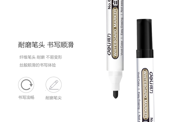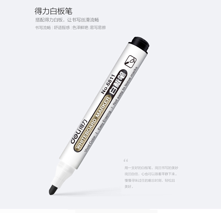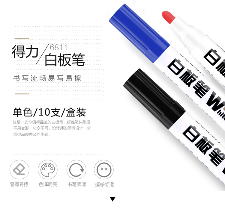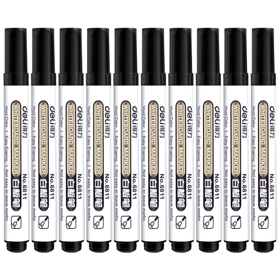 商品名称:得力(deli)黑色白板笔 可擦易擦 10支/盒6811