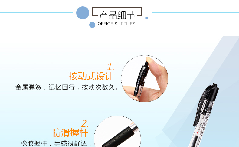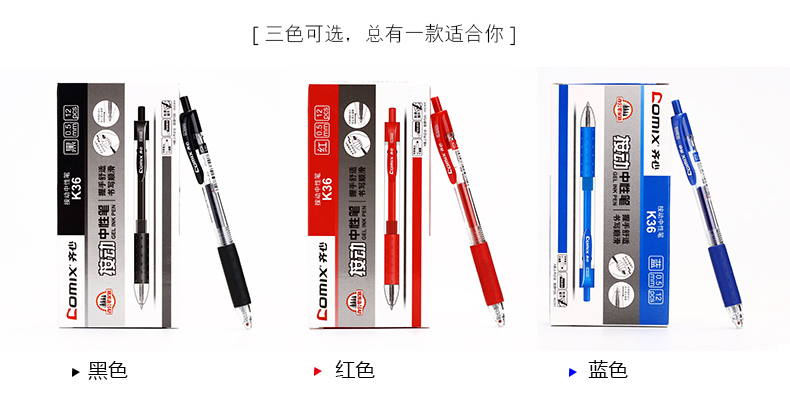 商品名称:齐心(COMIX)K36 按动式中性笔0.5mm 匹配笔芯R929黑(144支/箱)