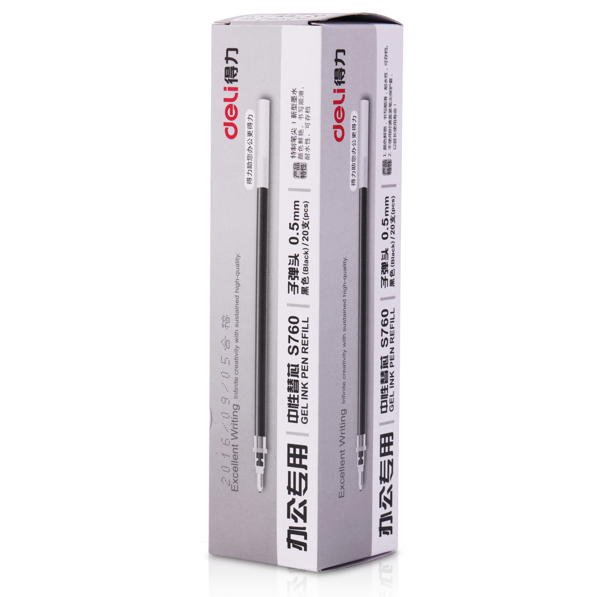 得力思达S760子弹头中性笔芯(黑) 20支装