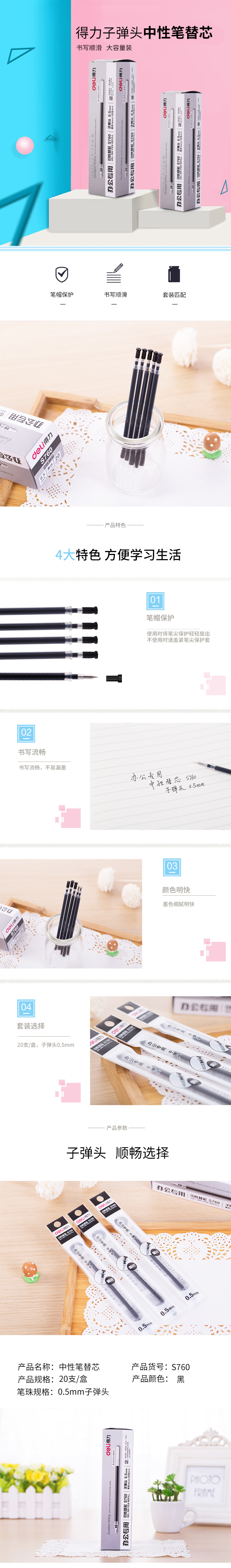 商品名称:得力思达S760子弹头中性笔芯(黑) 20支装