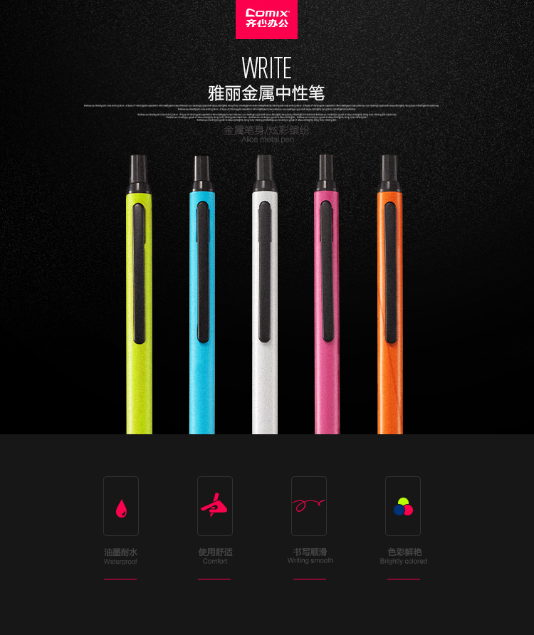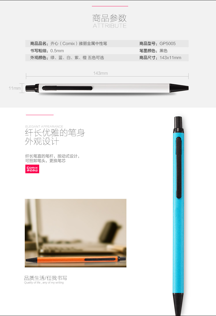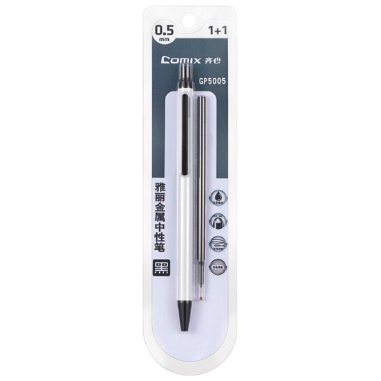 商品名称:齐心(COMIX)GP5005 雅丽金属中性笔 0.5mm白(24卡/箱)