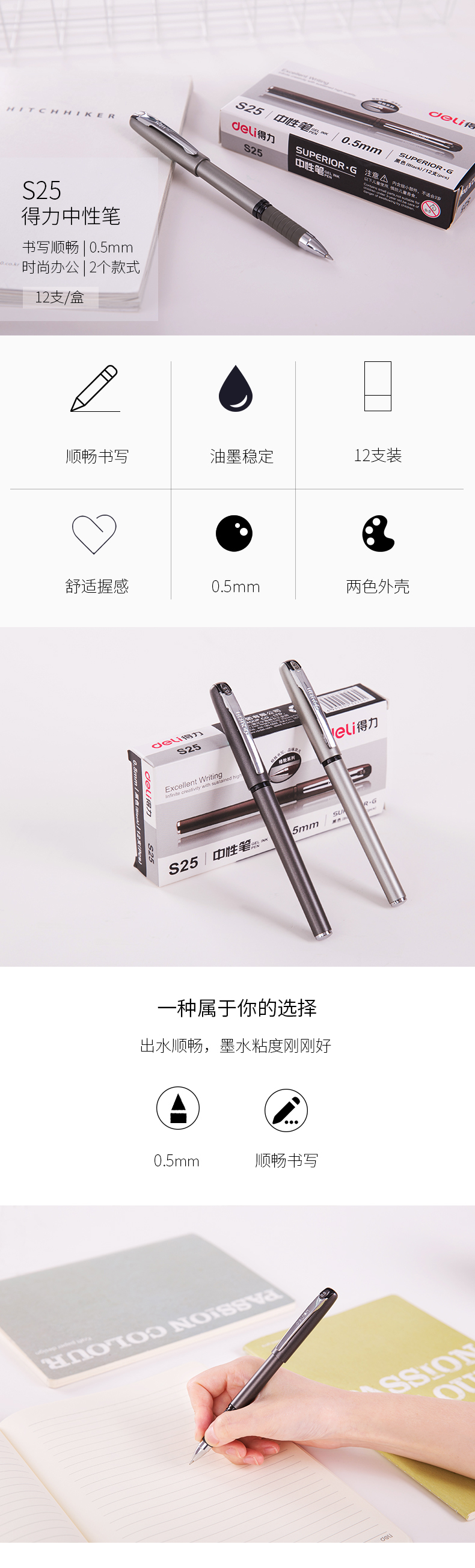 得力思达S25中性笔(黑) 12支装