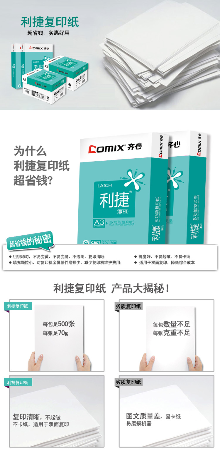 商品名称:齐心(COMIX)C3874-8 利捷70克A4复印纸(8包/箱)