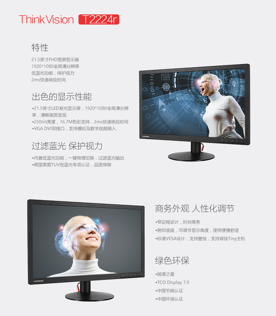 商品名称:联想显示器ThinkVision 21.5英寸宽屏LED液