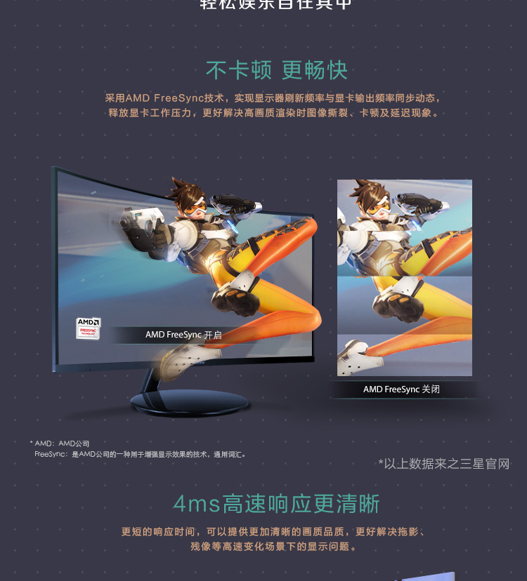 三星(SAMSUNG)C27H580FD 27英寸 曲面屏 电脑显示器 DP全高清屏幕