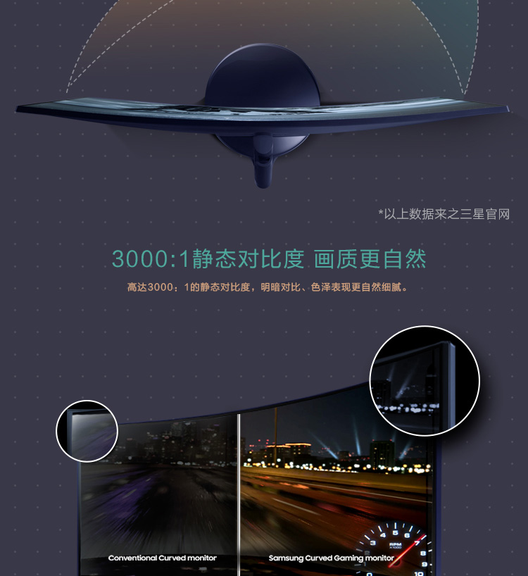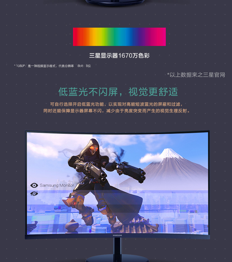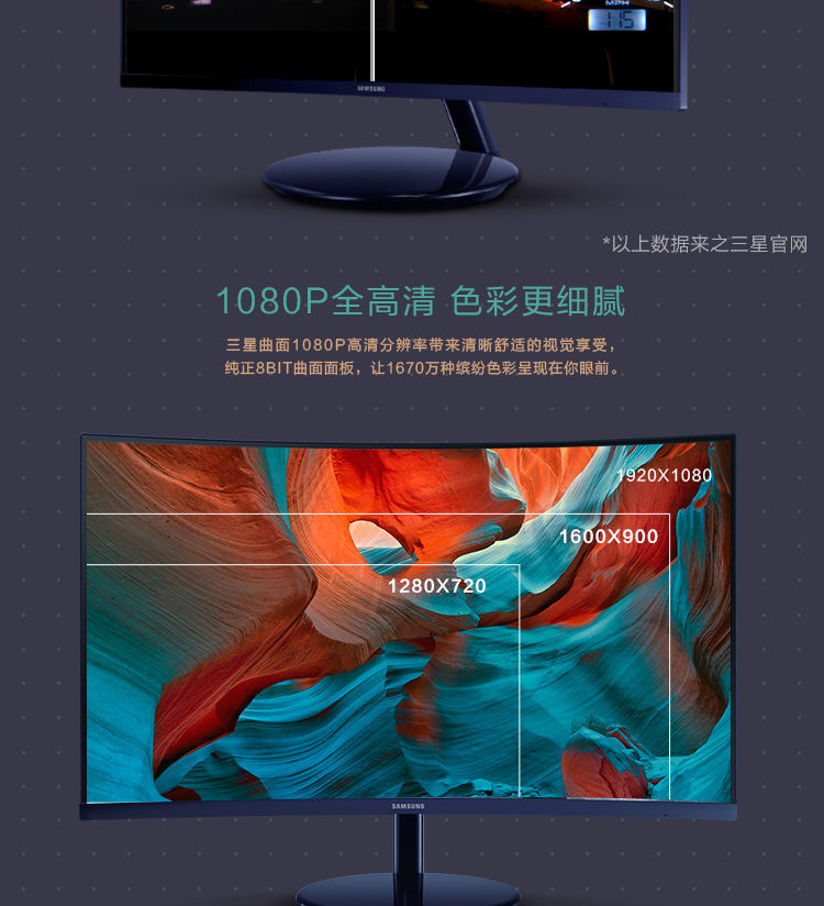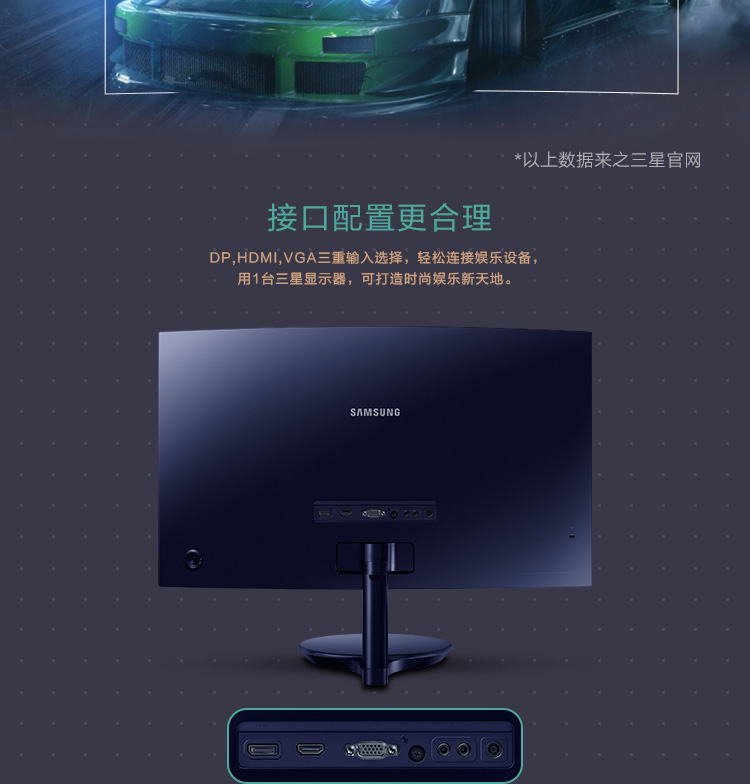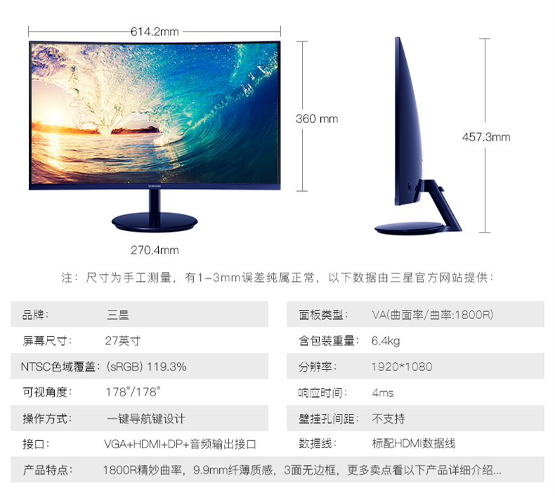 商品名称:三星(SAMSUNG)C27H580FD 27英寸 曲面屏 电脑显示器 DP全高清屏幕