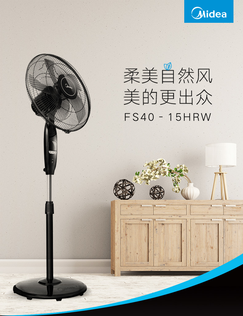 美的(Midea)FS40-15HRW 五叶遥控落地扇/电风扇