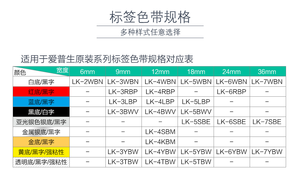 商品名称:爱普生(EPSON) 标签带标签机色带 36mm 白底黑字LC7WBN