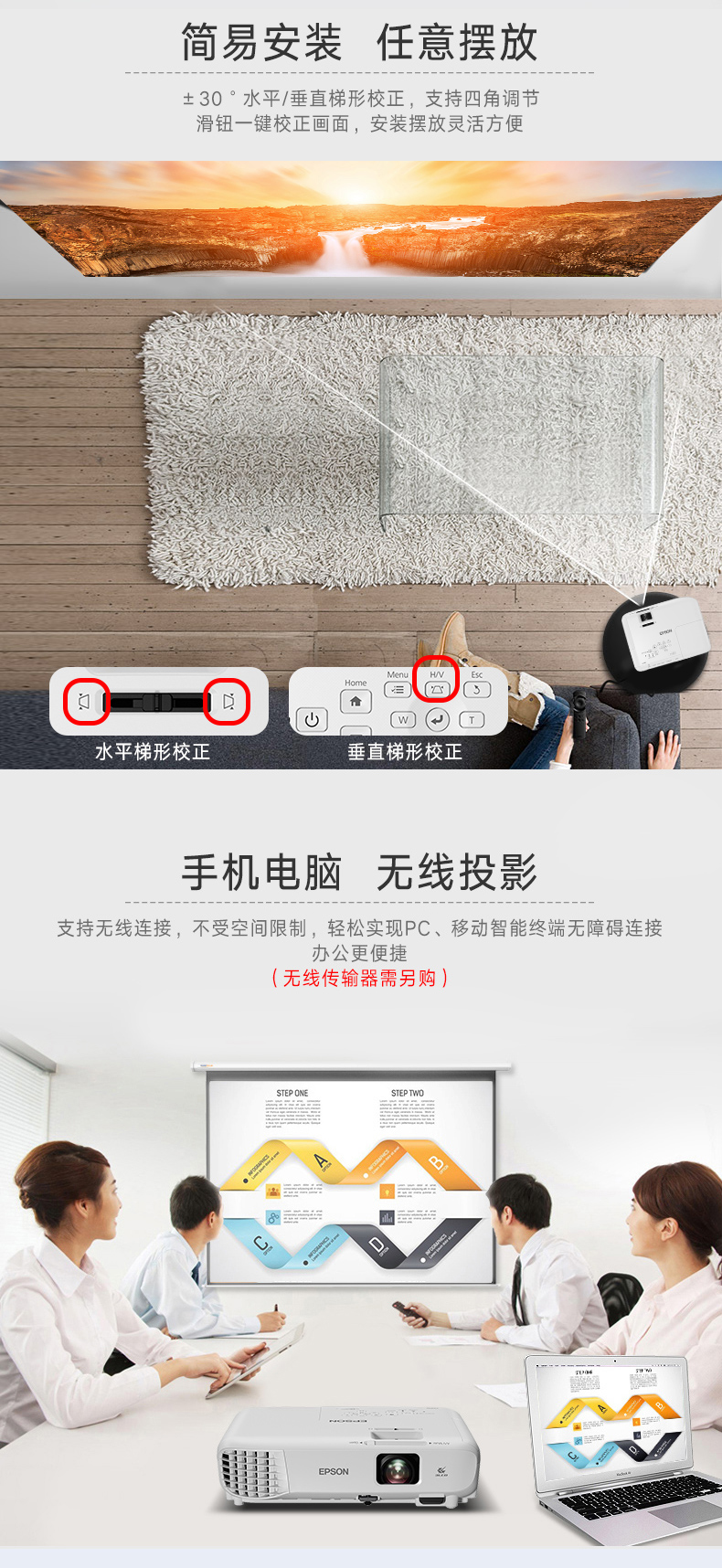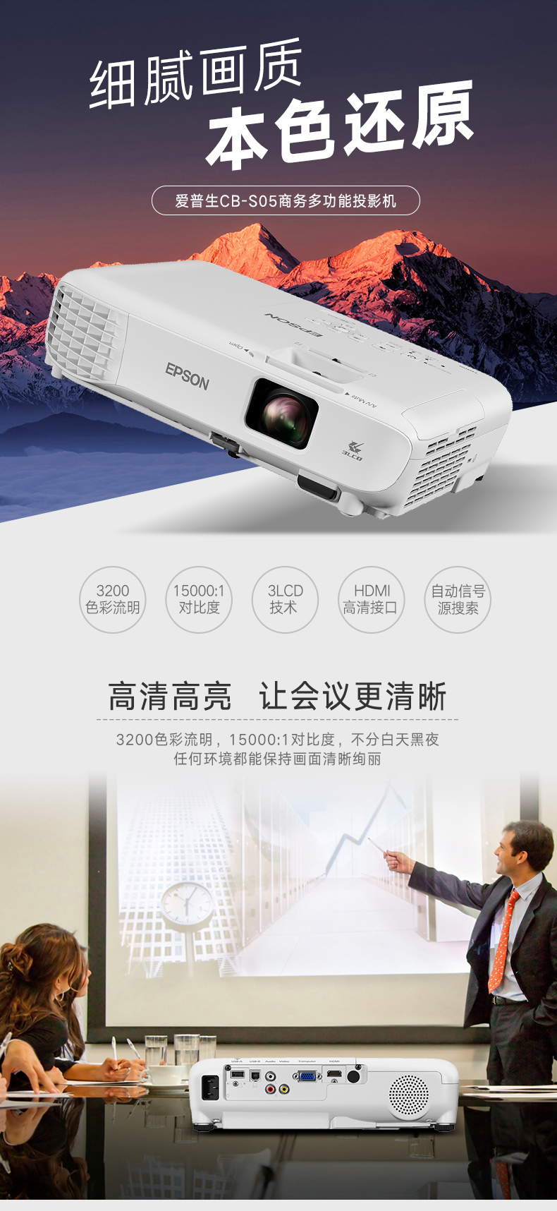 商品名称:爱普生(EPSON)CB-S05 办公 投影机 投影仪(3200流明 支持左右梯形校正 HDMI)