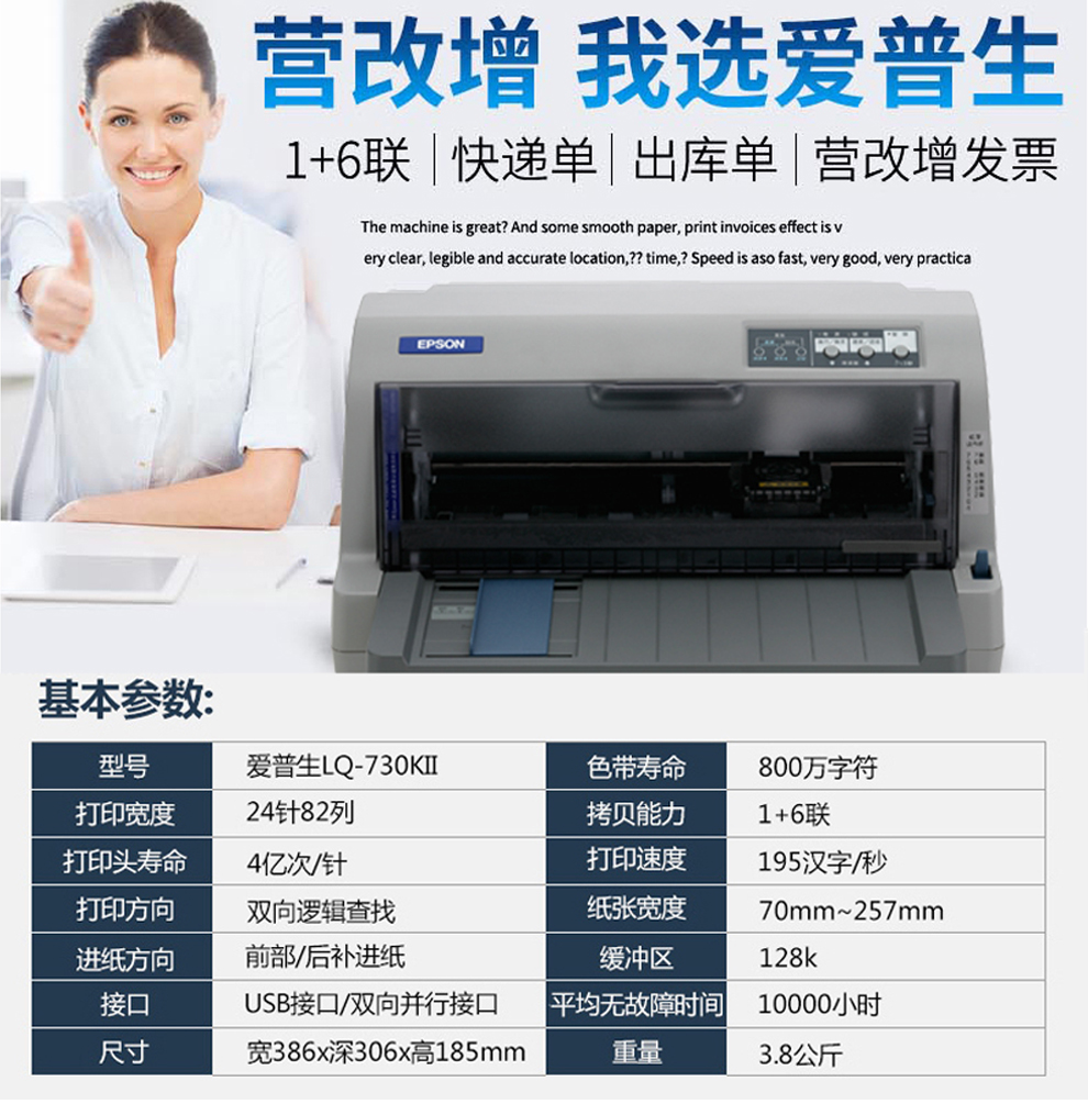 商品名称:爱普生(EPSON) LQ-730KII 针式打印机