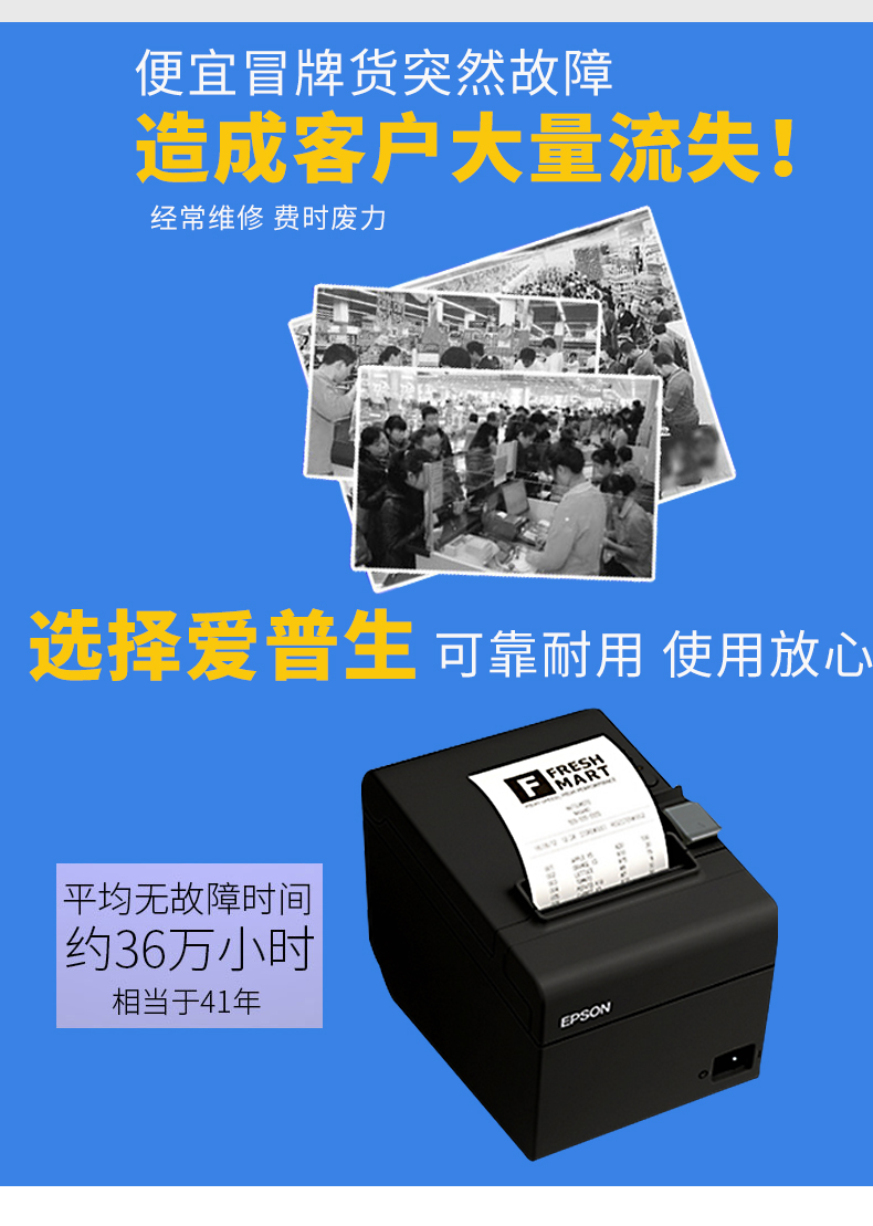 爱普生(EPSON) TM-T82II热敏80MM厨房餐饮小票打印机80MM