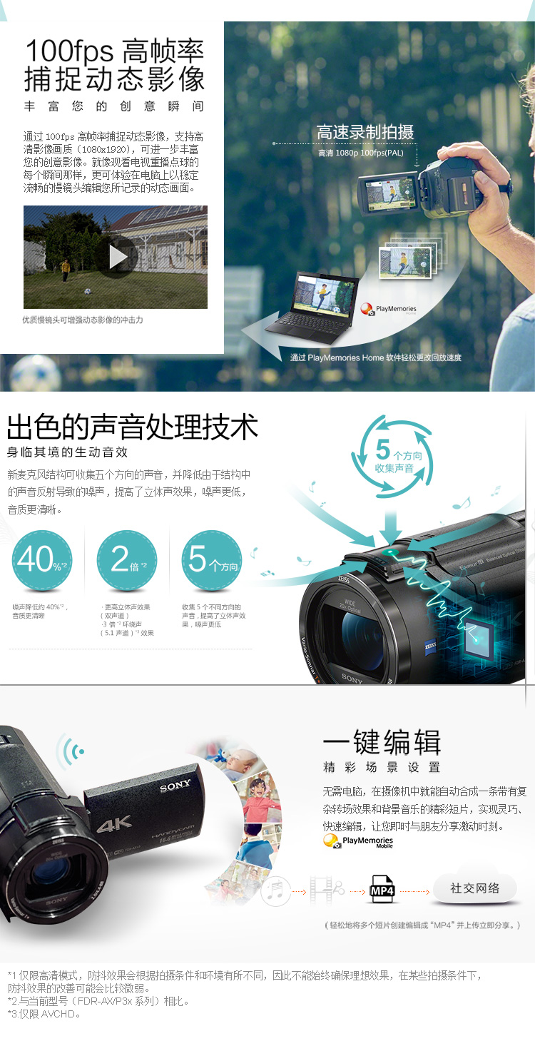 商品名称:索尼(SONY)FDR-AX40 4K高清数码摄像机