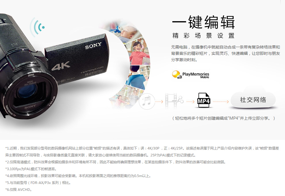 索尼(SONY) FDR-AXP55 高清数码摄像机 超清4K