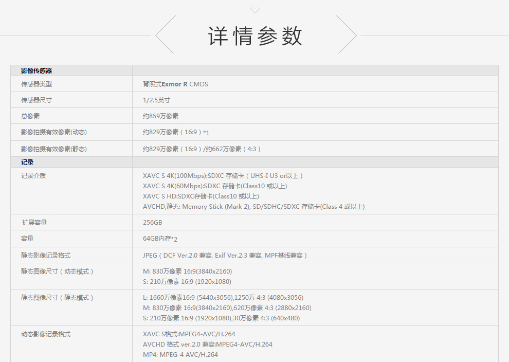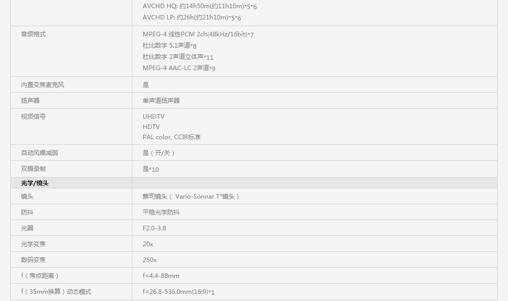 商品名称:索尼(SONY) FDR-AXP55 高清数码摄像机 超清4K