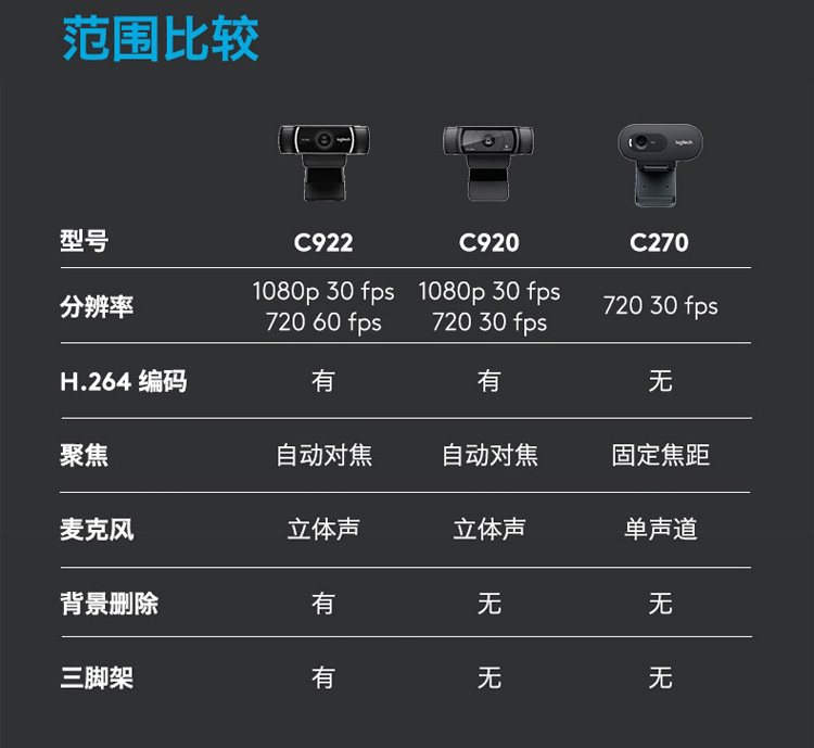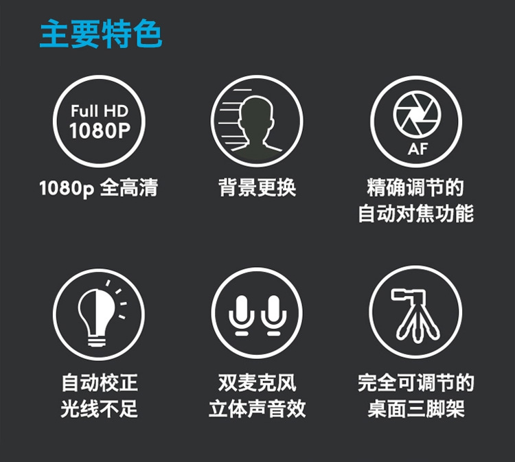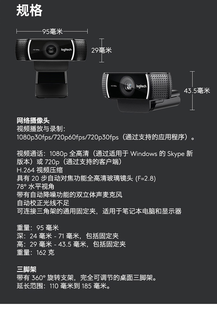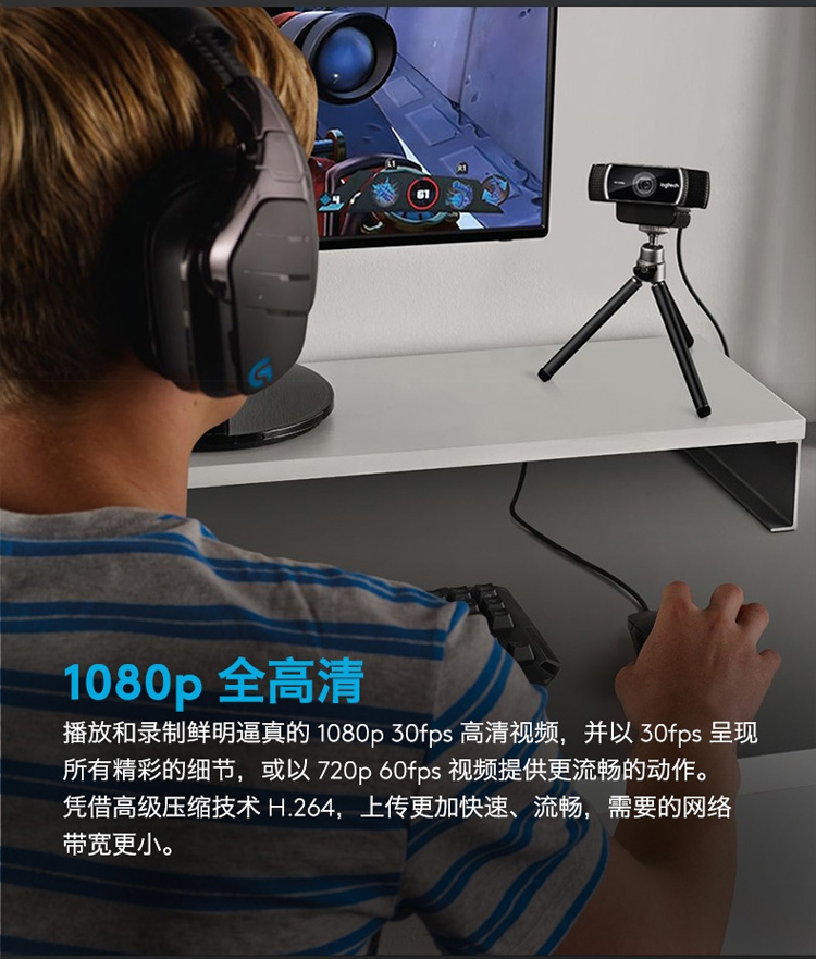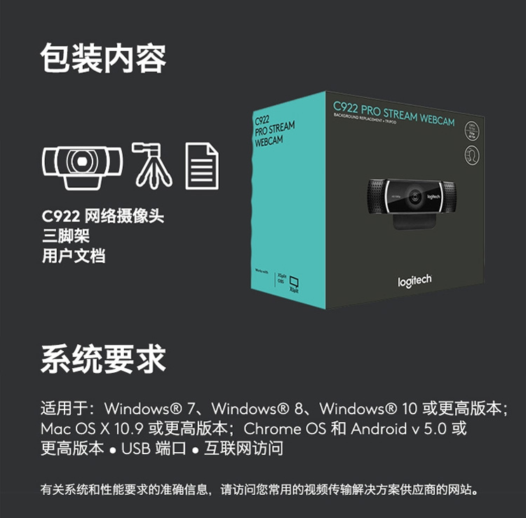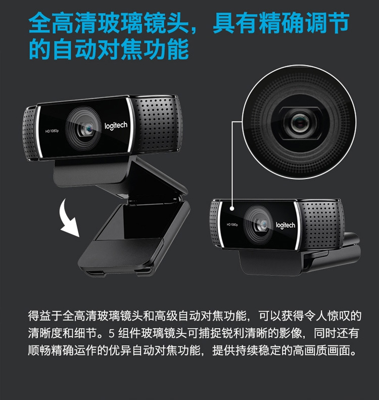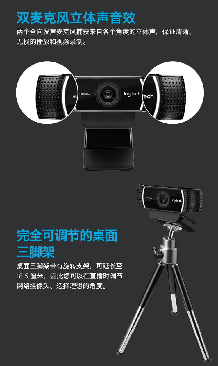 商品名称:罗技(Logitech)C922 Pro 高清网络主播专用摄像头(2个/箱)