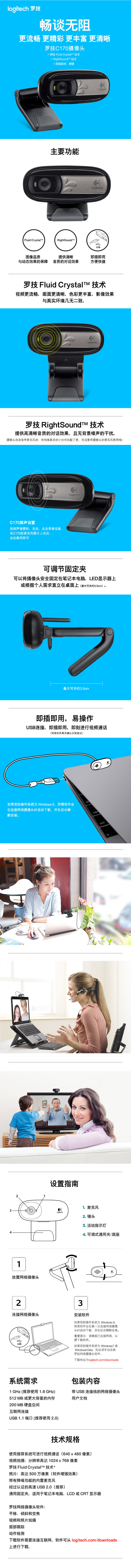 商品名称:罗技(Logitech)C170 网络摄像头 黑色(10个/箱)