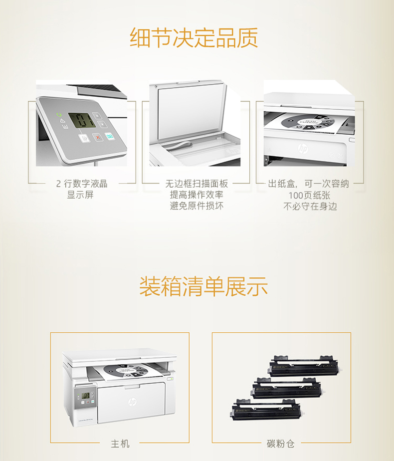 商品名称:惠普(HP) LaserJet Ultra MFP M134a激光多功能一体机