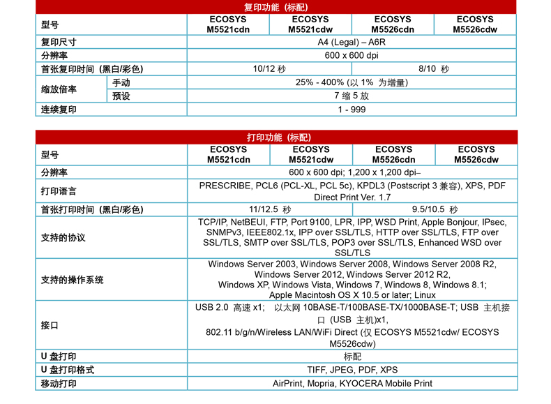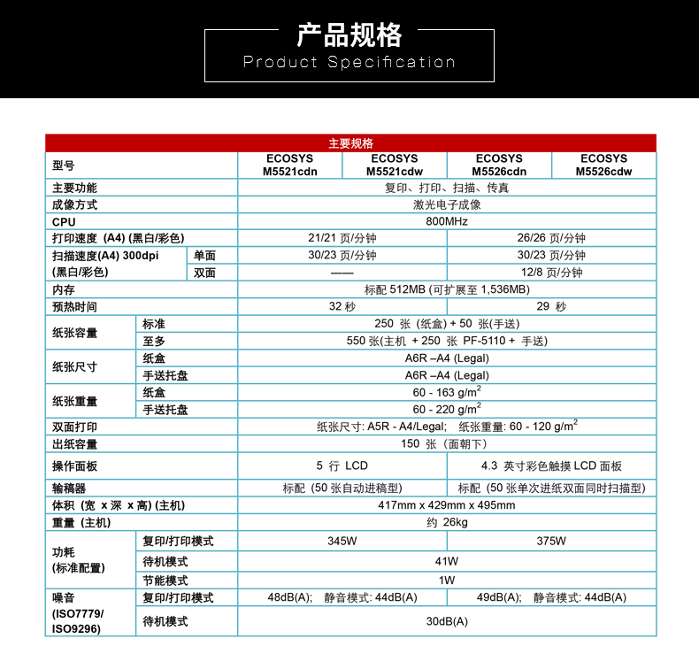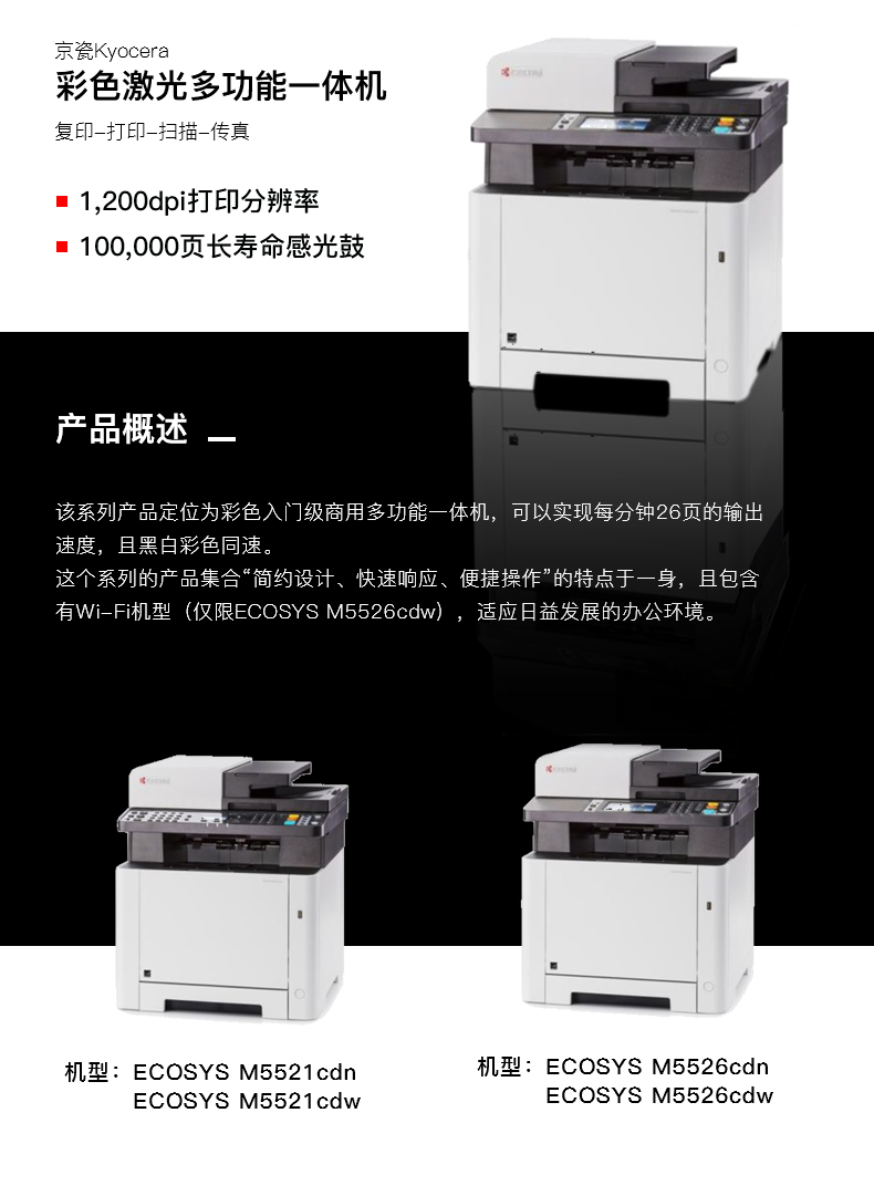 商品名称:京瓷(kyocera) M5526cdn 彩色激光多功能一体机