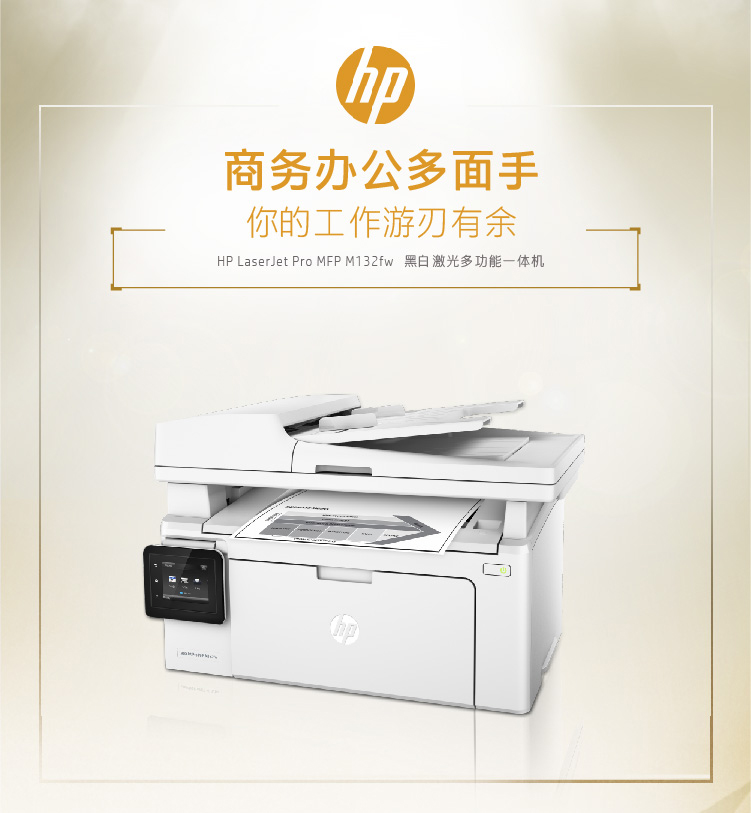 商品名称:惠普(HP)LaserJet Pro MFP M132fw黑白激光多功能一体机
